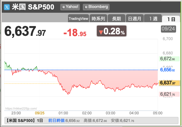 本日の米国S&P500 は、前の日から18ドル95セント下がって、6,637ドル97セントになりました。